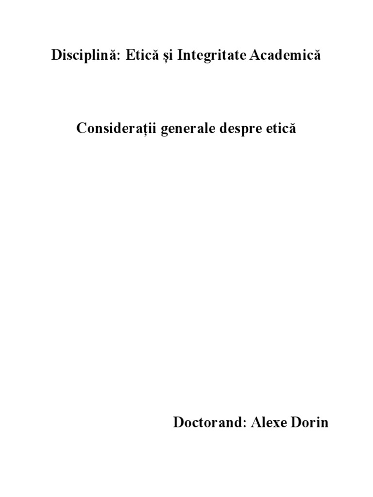 Disciplină: Etică și Integritate Academică