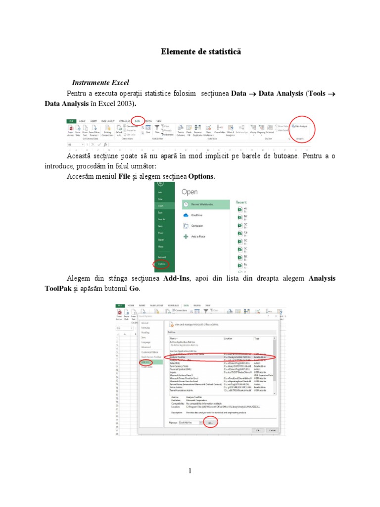 Pentru a executa operații statistice folosim secțiunea Data → Data Analysis (Tools →
