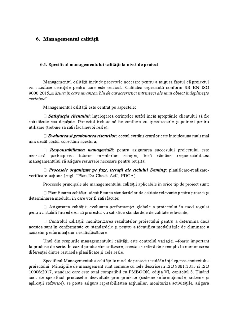 6.1. Specificul managementului calității la nivel de proiect