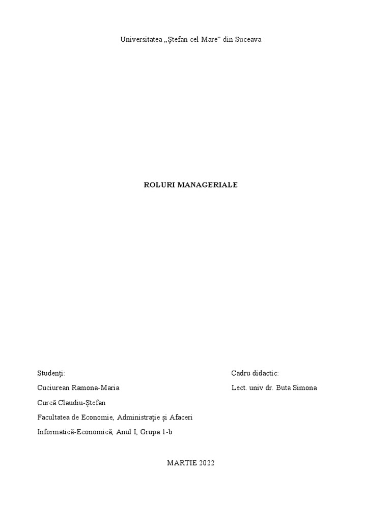 Introducere în management – Universitatea de Medicină și Farmacie „Carol Davila”, Roluri