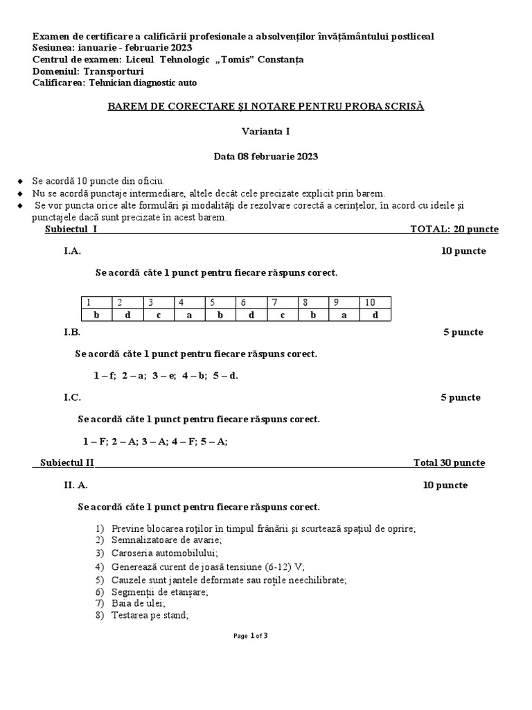 Nu se acordă punctaje intermediare, altele decât cele precizate explicit prin barem.