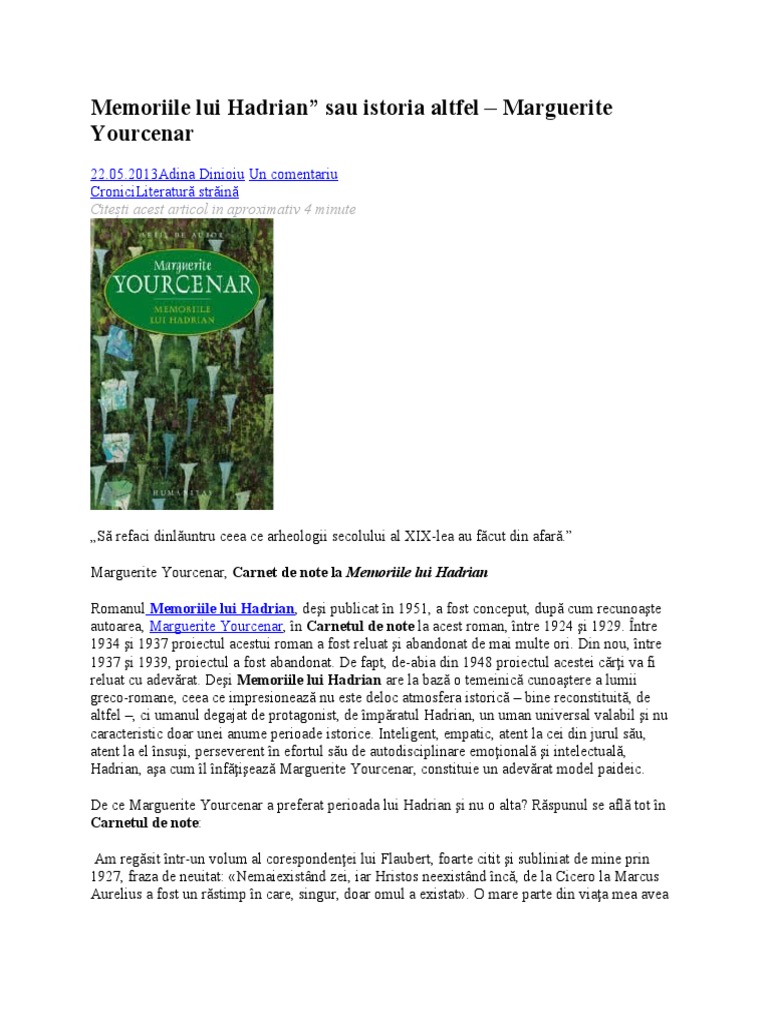 Memoriile lui Hadrian” sau istoria altfel – Marguerite