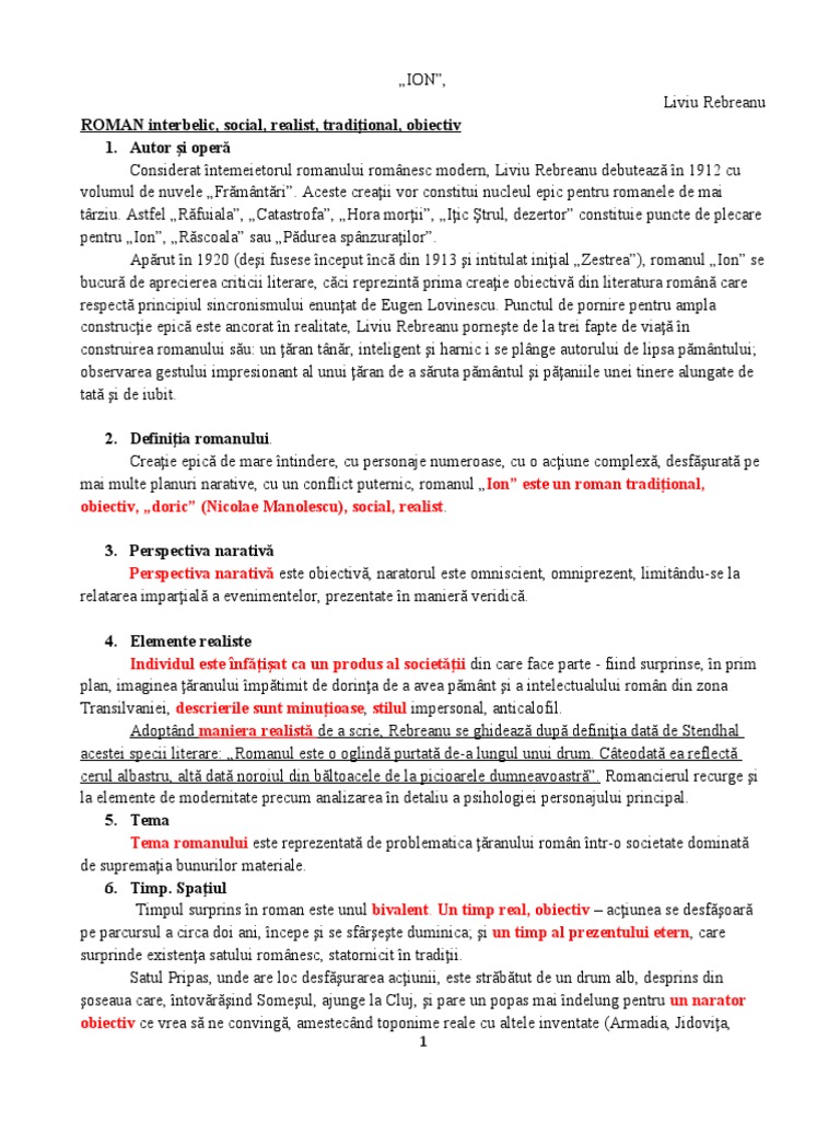Roman realist, social, „Ion” tinde să devină o frescă, înfăţişând întreaga viaţă a Ardealului, în