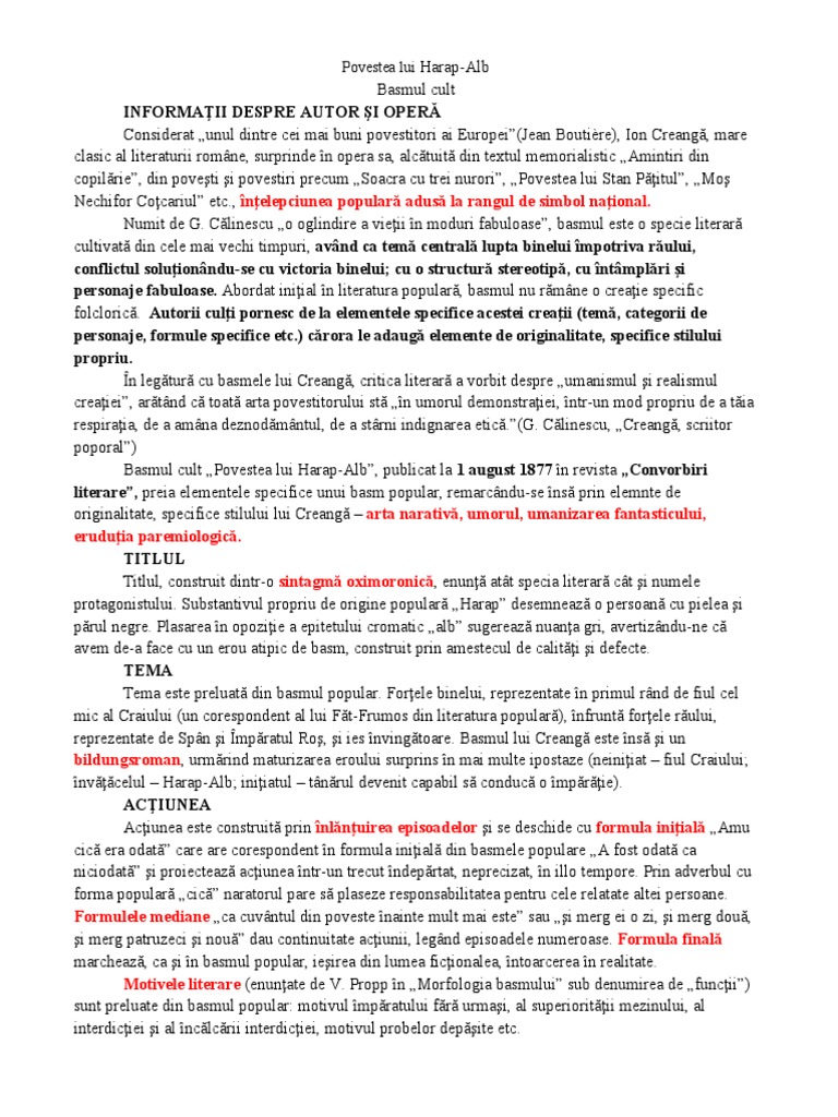 literare”, preia elementele specifice unui basm popular, remarcându-se însă prin elemnte de