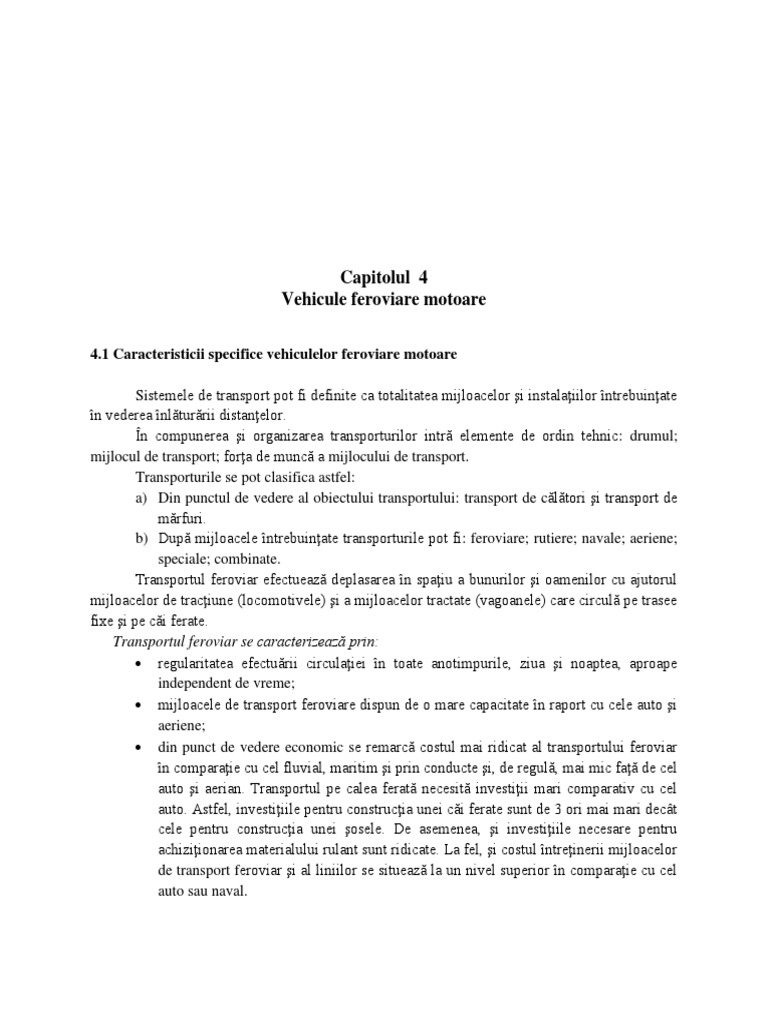 4.1 Caracteristicii specifice vehiculelor feroviare motoare