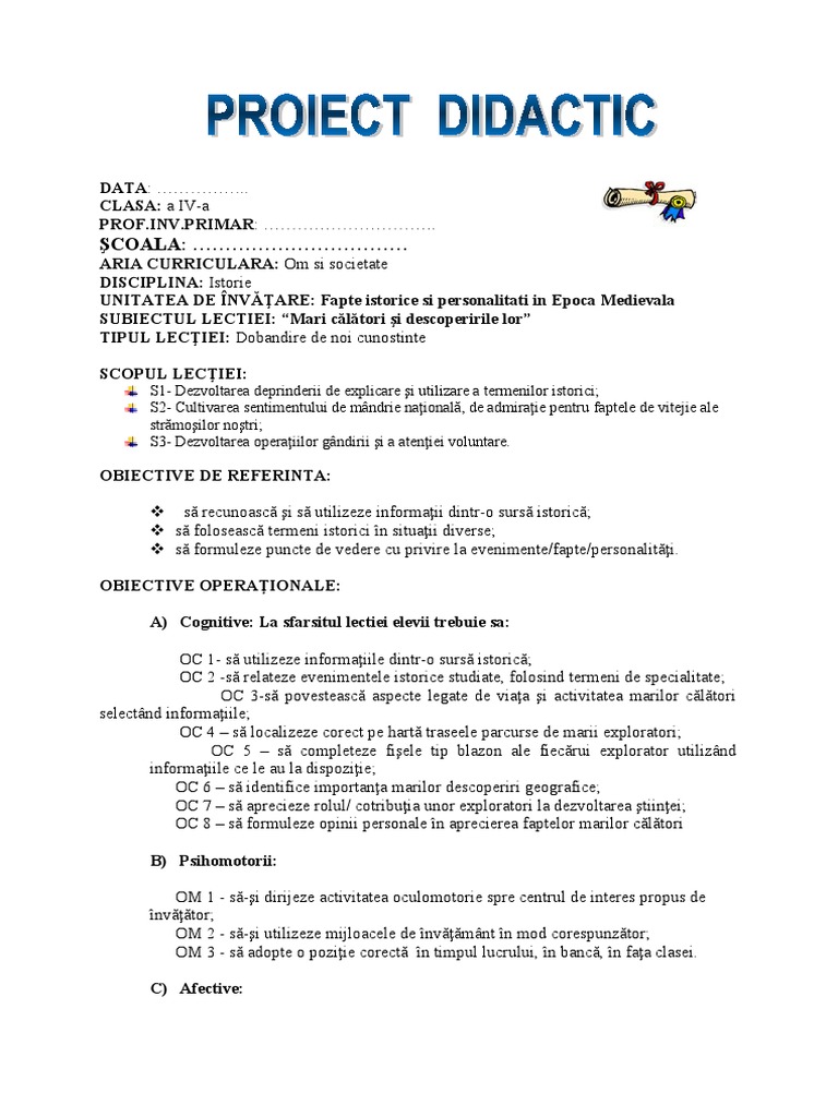 SUBIECTUL LECTIEI: “Mari călători şi descoperirile lor”