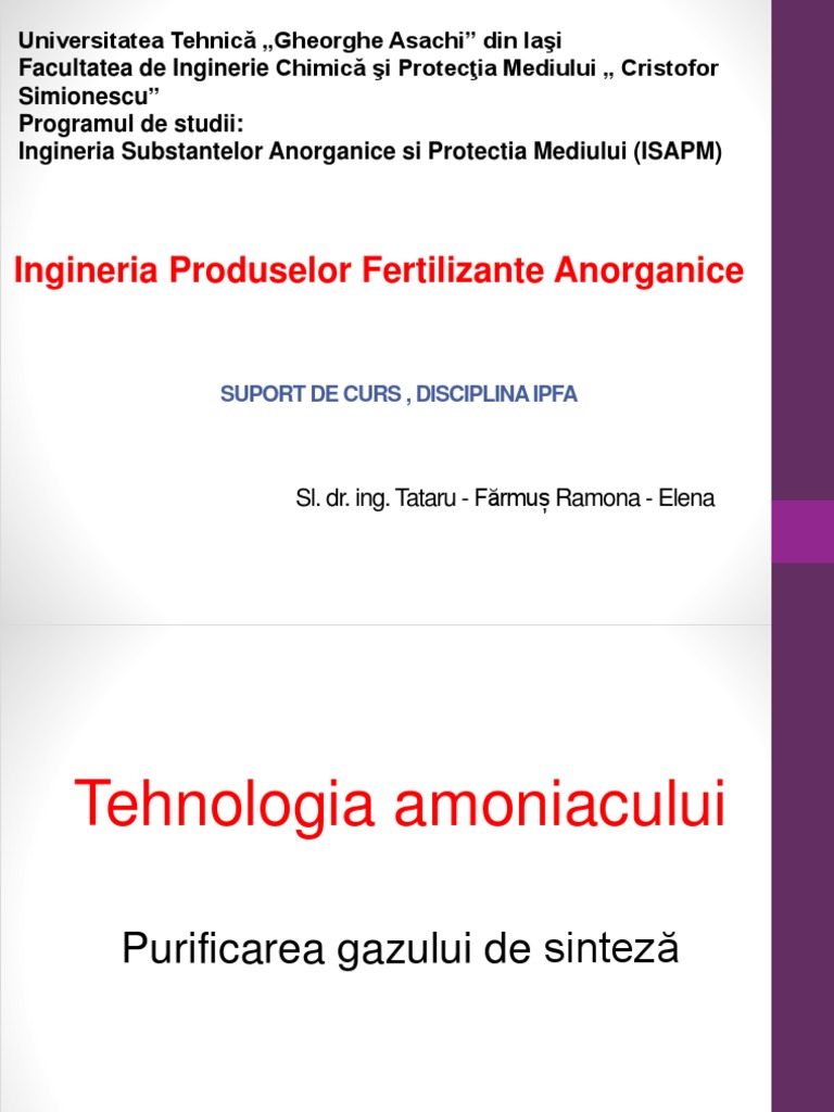 oxigen – otrăvuri pentru catalizatorul de fier, de aceea este necesara o