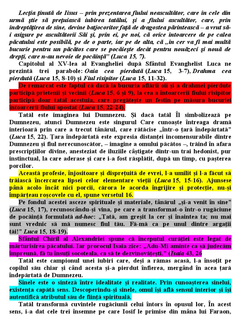 (Luca 15, 17), recunoscându-şi vina, pe care a transformat-o într-o rugăciune