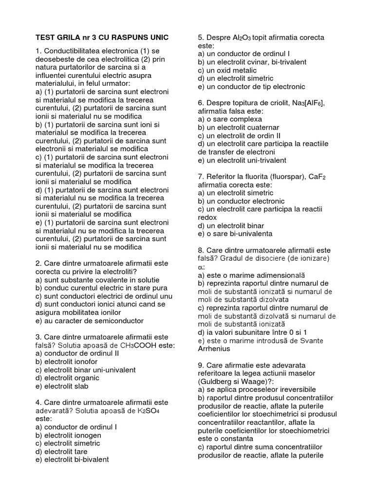 b) electrolit ionofor 9. Care afirmatie este adevarata