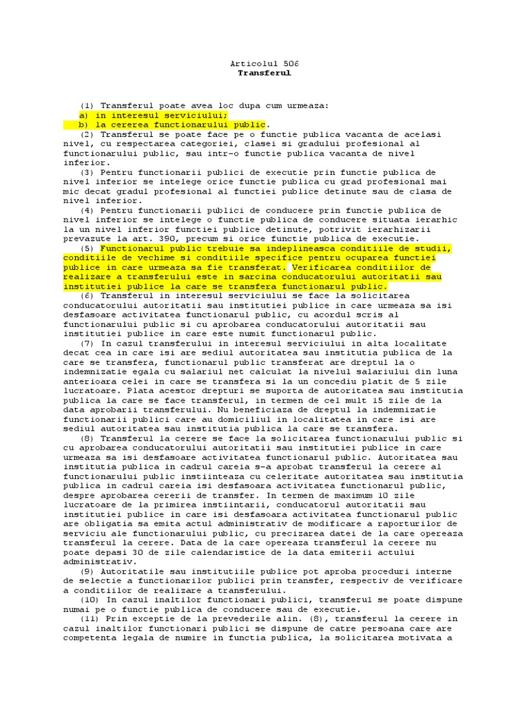 (8) Transferul la cerere se face la solicitarea functionarului public si