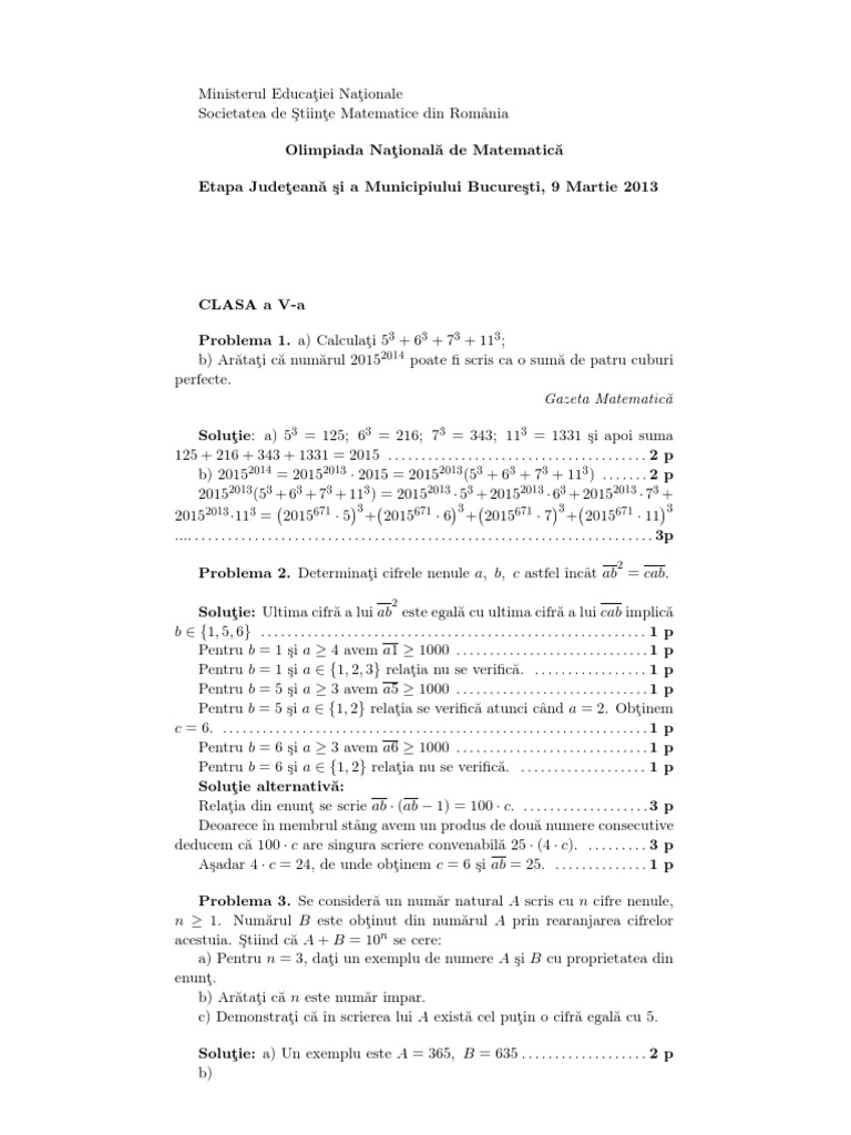 Problema 1. a) Calculaţi 53 + 63 + 73 + 113 ;