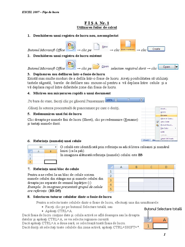 EXCEL 2007 – Fişe de lucru