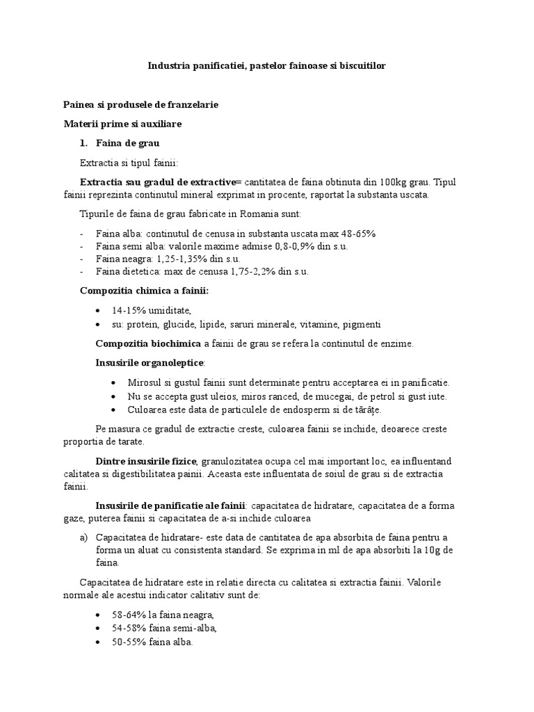 Compozitia biochimica a fainii de grau se refera la continutul de enzime.