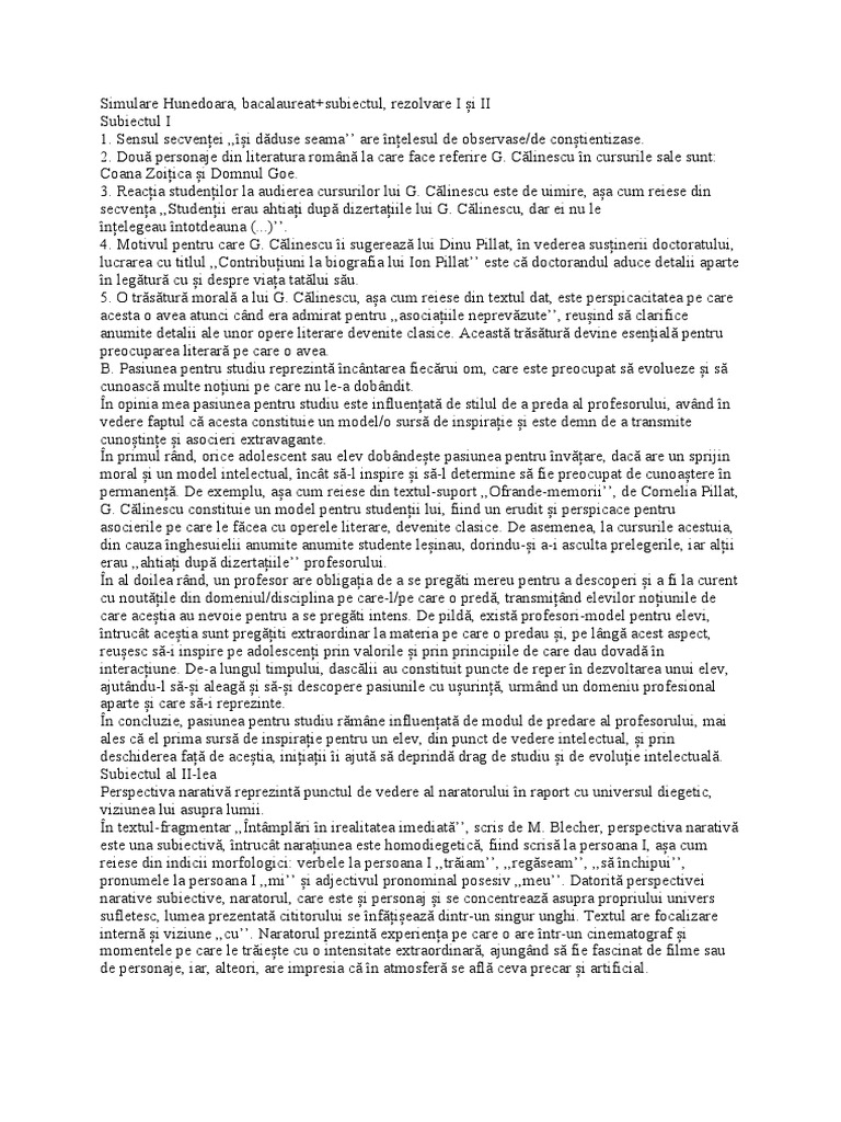 Simulare Hunedoara, bacalaureat+subiectul, rezolvare I și II