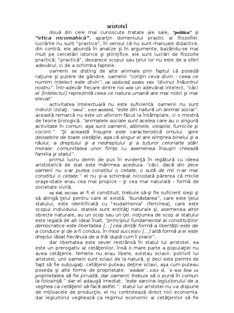 veghea ca cetăţenii să facă astfel.”. statul lui aristotel nu va dispune