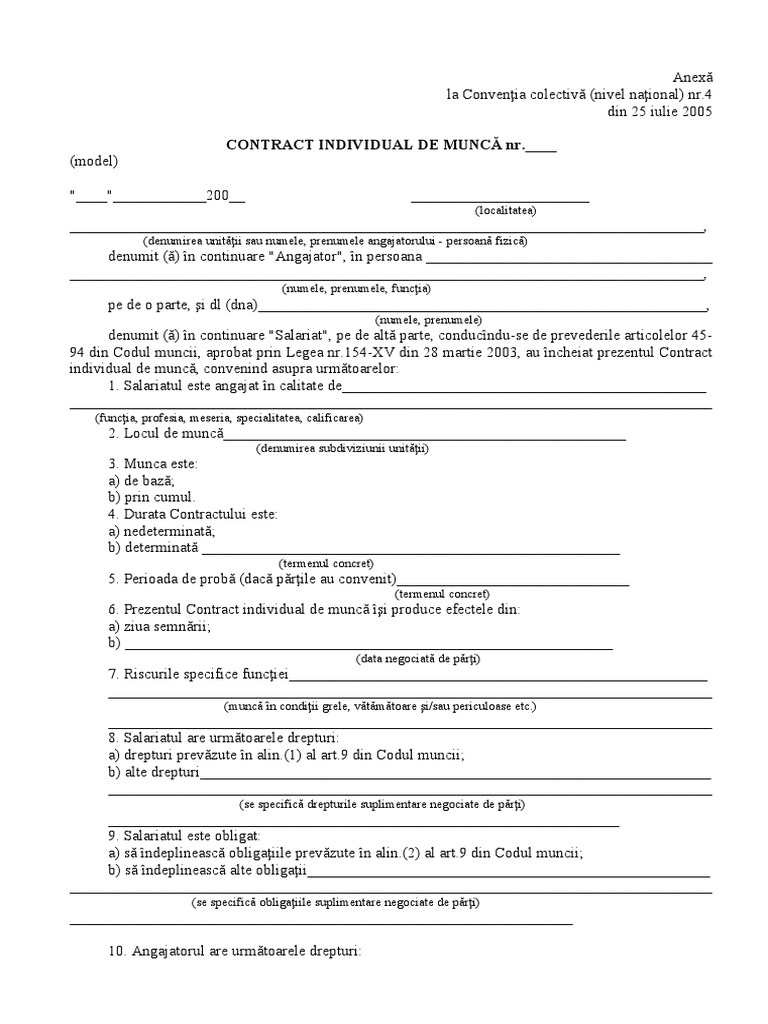 29. Prezentul Contract individual de muncă este întocmit în două exemplare avînd aceeaşi putere