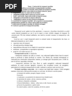 le preia ntr-un termen rezonabil; - a livrat o parte din marfuri sau este gata sa livreze o parte dintre ele daca navlul este stabilit lumpsum; - armatorul este mpiedicat sa livreze marfurile din vina exclusiva a proprietarul ui marfii sau a navlositorului prin: o refuzul de a prelua marfurile; o solicitarea livrarii marfurilor ntr-un port intermediar; o refuzul de a nomina un port sigur. 11. Cum se plateste navlul in cazul marfurilor avariate? - daca in contract nu apare nicio clauza cu privire la acest lucru, arma torul este indreptatit la navlu intreg daca: este gata sa livreze marfurile in p ortul de destinatie, chiar daca acestea sunt avariate si daca nava este angajata pentru navlu lumpsum si o parte din marfa este livrata, chiar daca este avariat a 12. Ce reprezinta navlul mort ? - o despagubire pe care o primeste armatorul in cazul n care prin contrac tul de navlosire se stabileste ca nava va ncarca o anumita cantitate de marfa si navlositorul, dintr-un motiv sau altul, nu livreaza aceasta cantitate 13. Cand se plateste back freight? -cand nava nu poate ajunge n portul de descarcare din cauza unui pericol exceptat, iar navlositorul nu preia marfurile sau nu da instructiuni cu privire la livrarea marfurilor ntr-un timp rezonabil, comandantul navei are dreptul si ob ligatia de a proteja interesele proprietarului marfurilor, pe cheltuiala acestui a. 14. Cand au armatorii drept de sechestru asupra marfurilor? - pentru plata navlului - pentru plata contribuitiei pentru avarie comuna - pentru plata cheltuielilor suplimentare efectuate de comandant sau arm ator pentru protejarea marfurilor Contractul de navlosire pe timp 15. Care sunt principalele formulare standard ale contractelor de navlosire pe t imp? - BALTIME; SUPPLYTIME; BOXTIME; BEEPEETIME; INTERTANKTIME; SHELLTIME; TE XACOTIME; 16. Ce contine preambulul contractului de navlosire pe timp? - descrierea navei; - descrierea zonei de navigatie si a marfurilor ce pot fi transportate; - durata contractului.( determinata, nedeterminata) 17. Care este scopul inspectiillor de livrare si relivrare ? De a determina : cantitatea de combustibil existenta la bord n momentul l ivrarii si relivrarii; starea generala a navei, n special a compartimentelor n ca re urmeaza a se ncarca marfa; capacitatea navei de a ncepe operatiunile de ncarcar e imediat dupa terminarea inspectiei. 18. Cum se va efectua plata chiriei si scoaterea navei din contractul de navlosi re pe timp ? - este platita n avans, de obicei, la fiecare 15 sau 30 de zile socotite de la data si ora la care nava a fost livrata navlositorului. Chiria poate fi ex primata ca o suma fixa pe zi, de exemplu $ 5000 / zi, sau ca o anumita suma pe c apacitatea de ncarcare a navei (deadweight) pe luna calendaristica, spre exemplu $7/tdwt/luna. (in contractele de navlosire de pe piata de produse petroliere exi sta o clauza conform careia daca navlul scae, navlositorul are dreptul sa acoste