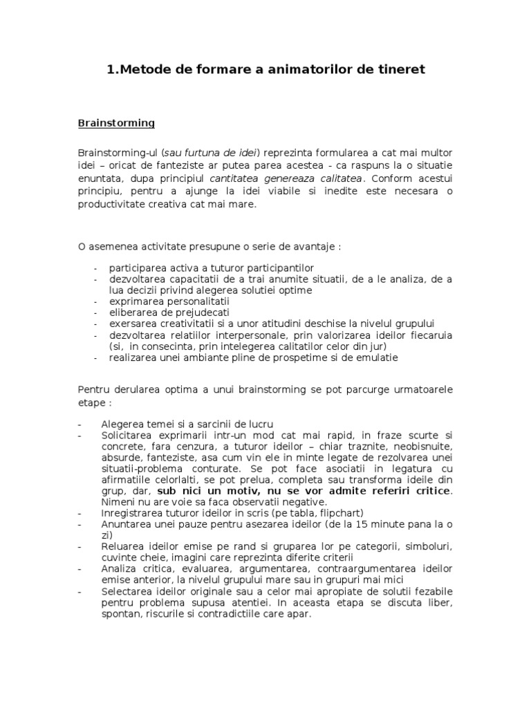 Brainstorming Brainstorming-ul (sau furtuna de idei) reprezinta formularea a cat mai multor idei oricat de fanteziste ar putea parea acestea - ca raspuns la o situatie enuntata, dupa principiul cantitatea genereaza calitatea. Conform acestui principiu, pentru a ajunge la idei viabile si inedite este necesara o productivitate creativa cat mai mare.
