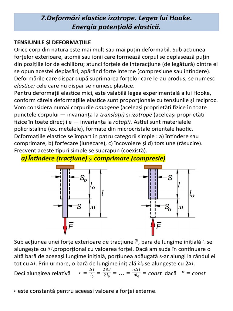 [Link]ări elastice izotrope. Legea lui Hooke.