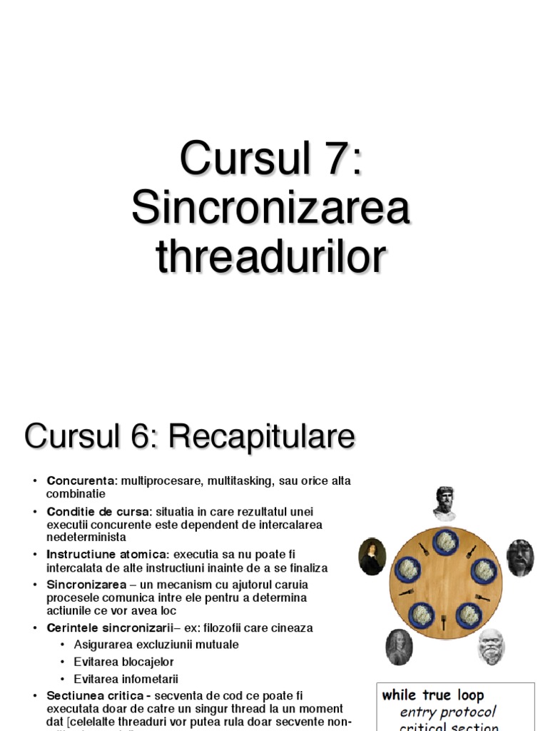 • Cerintele sincronizarii– ex: filozofii care cineaza