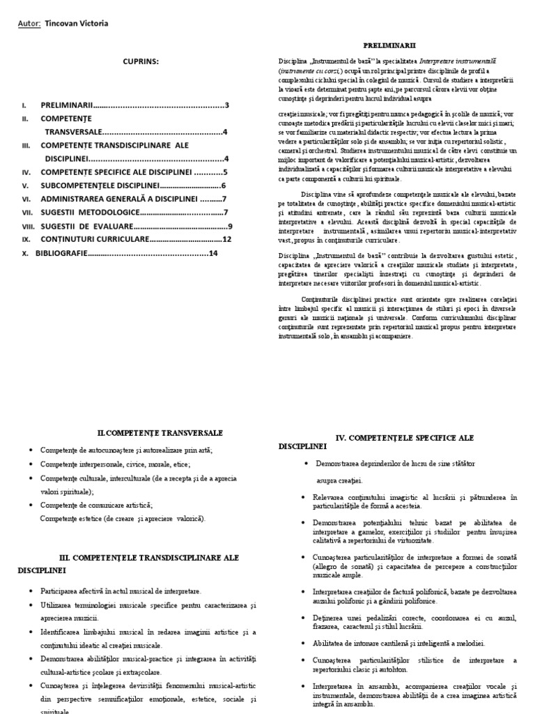 VIII. CONȚINUTURI CURRICULARE arcușului.