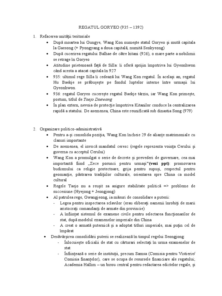 2. Politica internă în prima jumătate a regatului Goryeo