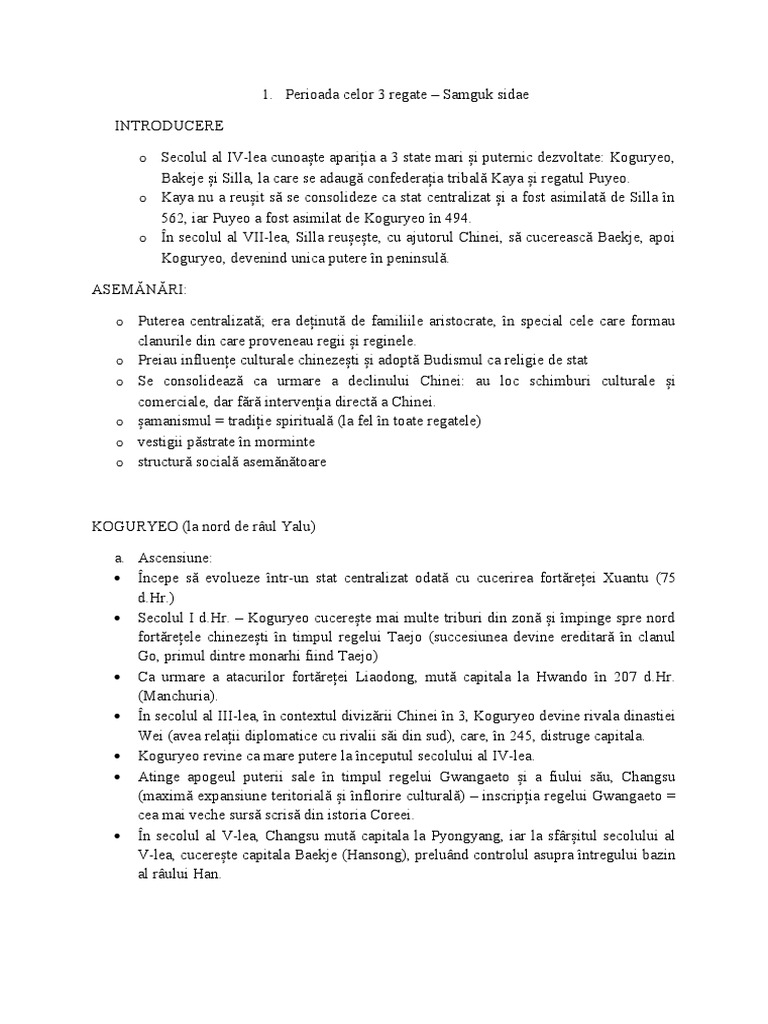 o Secolul al IV-lea cunoaște apariția a 3 state mari și puternic dezvoltate: Koguryeo,