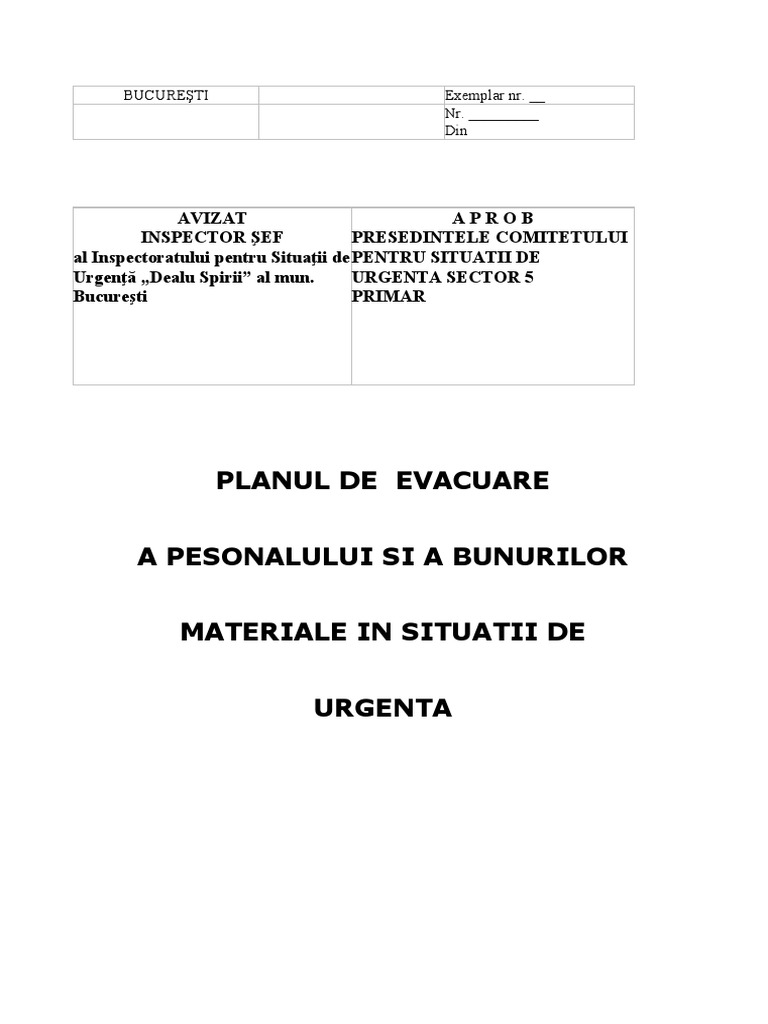aparţinând ………………………………………………. Acţiunile de evacuare se