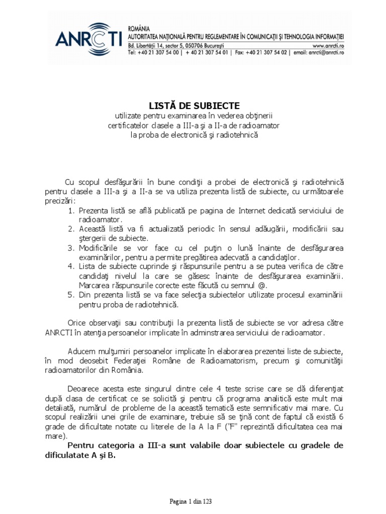 certificatelor clasele a III-a şi a II-a de radioamator