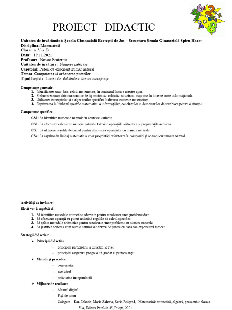 (30 min) baza şi exponentul sunt numere mici nu este o de profesor cu şi