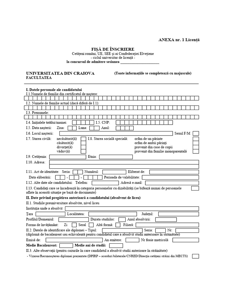 UNIVERSITATEA DIN CRAIOVA (Toate informaţiile se completează cu majuscule)