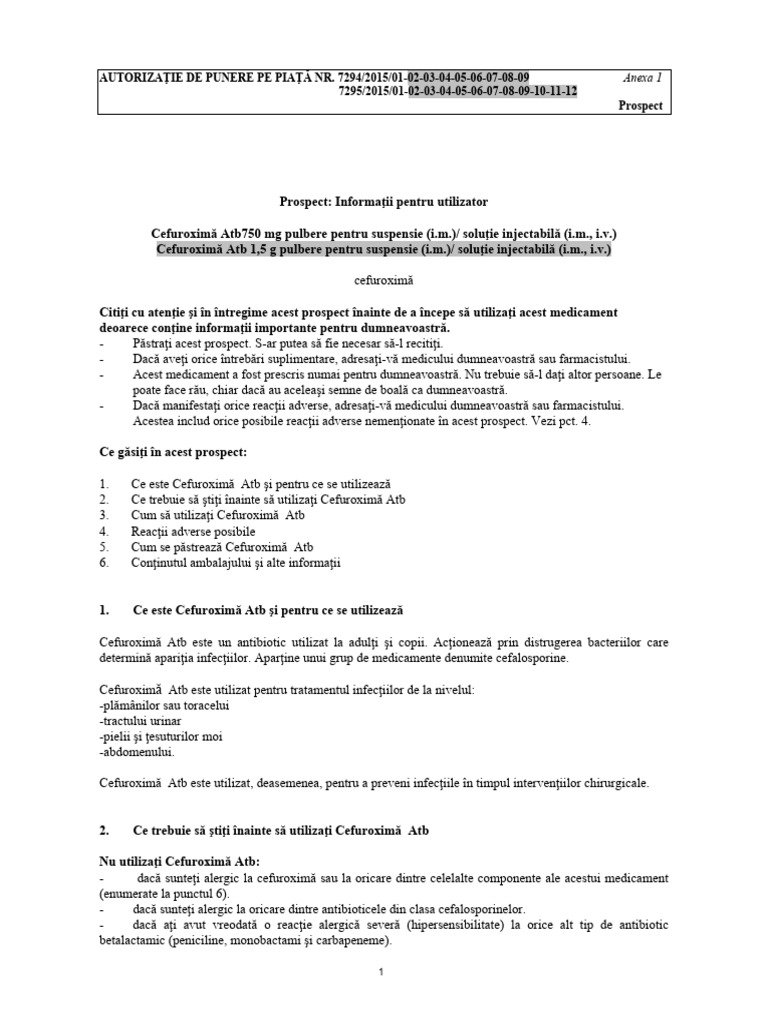consideraţi că acestea sunt valabile pentru dumneavoastră. Nu trebuie să vi se administreze Cefuroximă Atb.