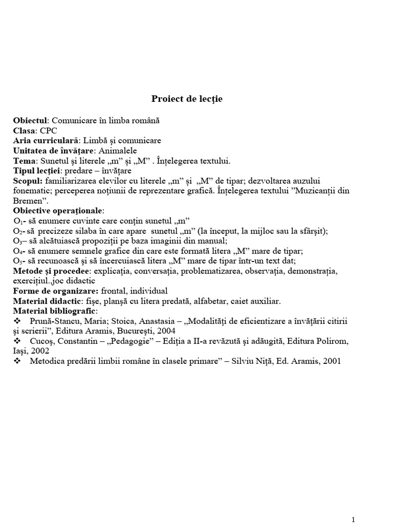 Proiect de lecţie