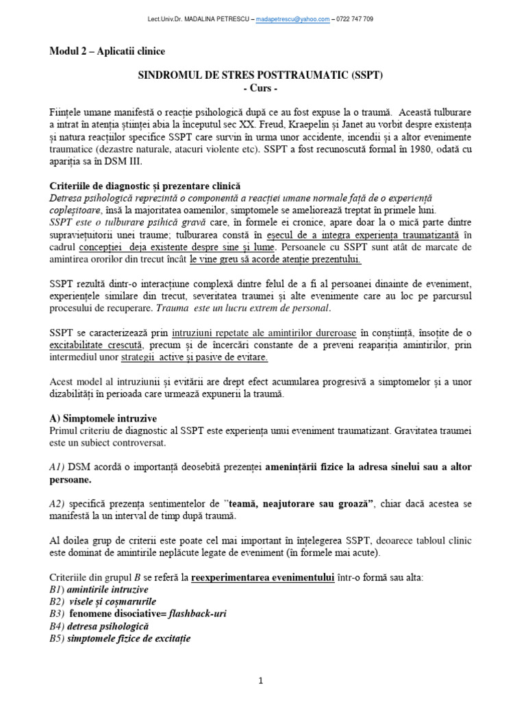 existențiali, ci și detalii legate de experiența traumatizantă, istoricul traumatic anterior și condiția