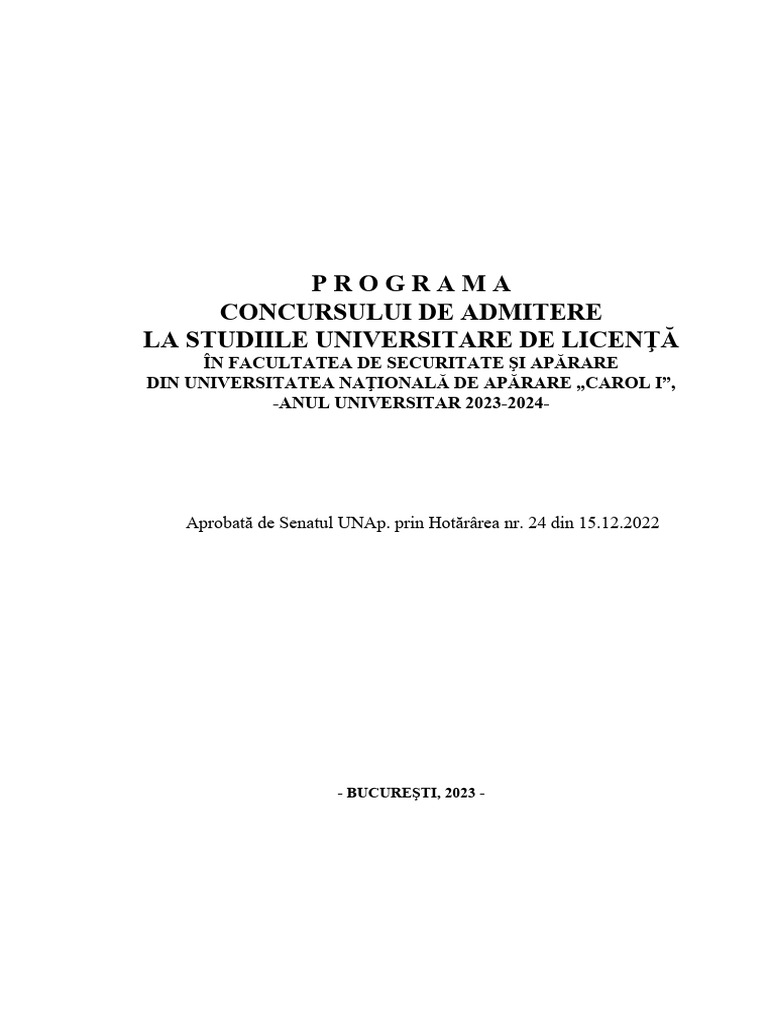 1. Actuala Programă a concursului de admitere în Facultatea de securitate şi