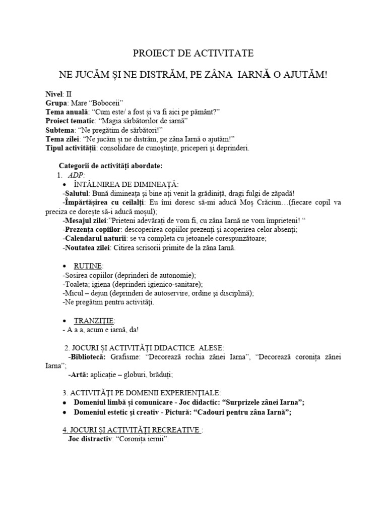 PROIECT DE ACTIVITATE