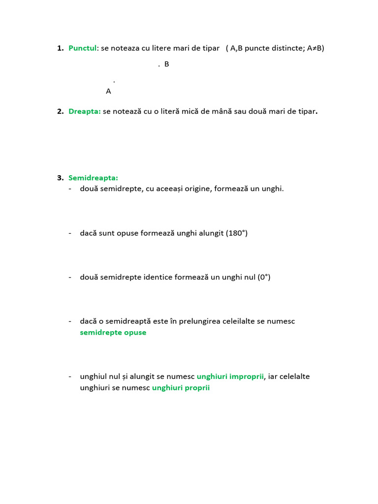 Punctul: se noteaza cu litere mari de tipar ( A,B puncte distincte; A≠B)