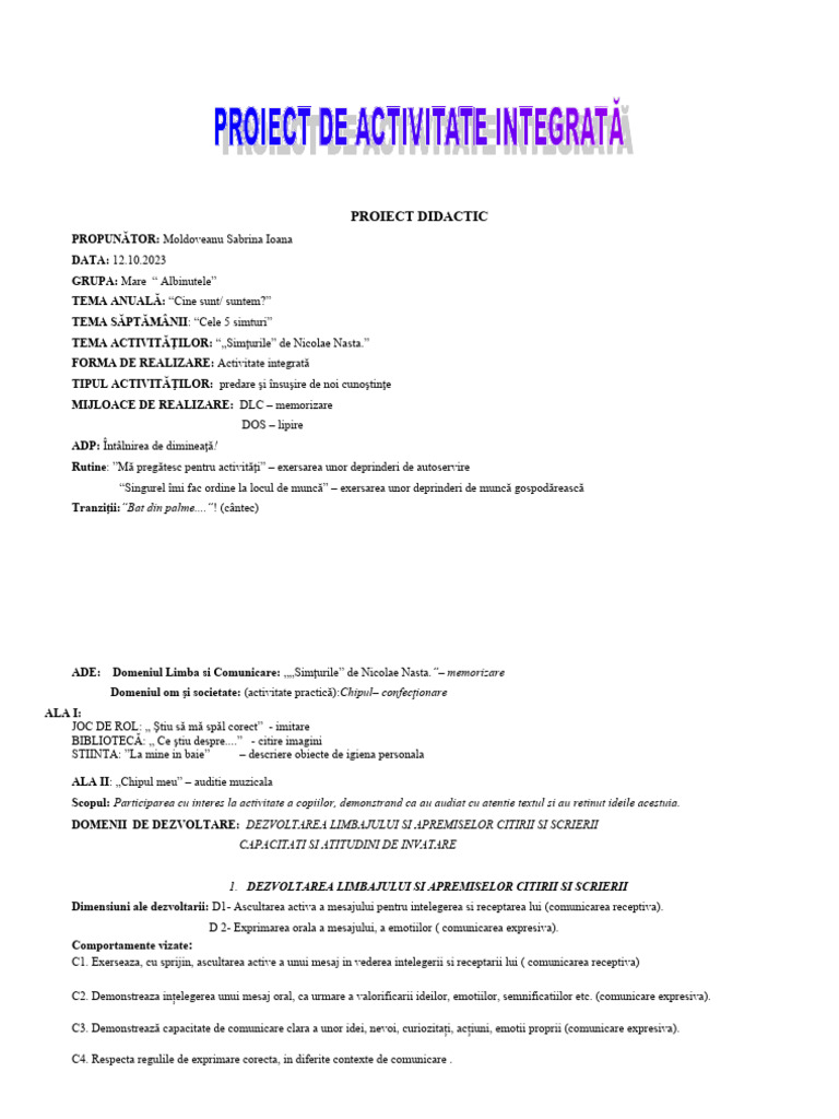 ELEMENTE COMPONENTE ALE ACTIVITATII INTEGRATE