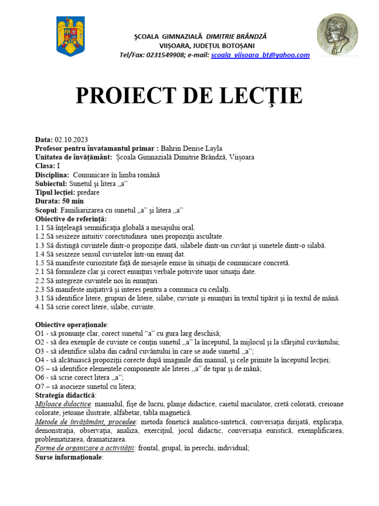 Unitatea de învăţământ: Școala Gimnazială Dimitrie Brândză, Viișoara
