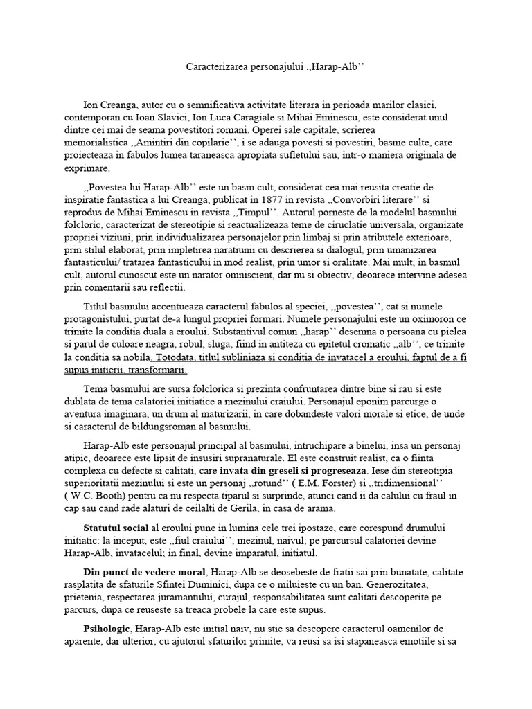 Caracterizarea personajului ,,Harap-Alb’’
