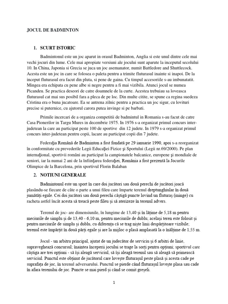 Badmintonul este un joc aparut in orasul Badminton, Anglia si este unul dintre cele mai