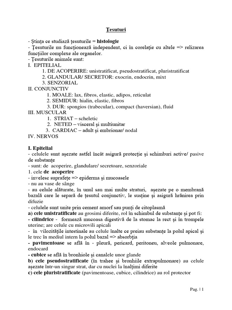 - Ştinţa ce studiază ţesuturile = histologie