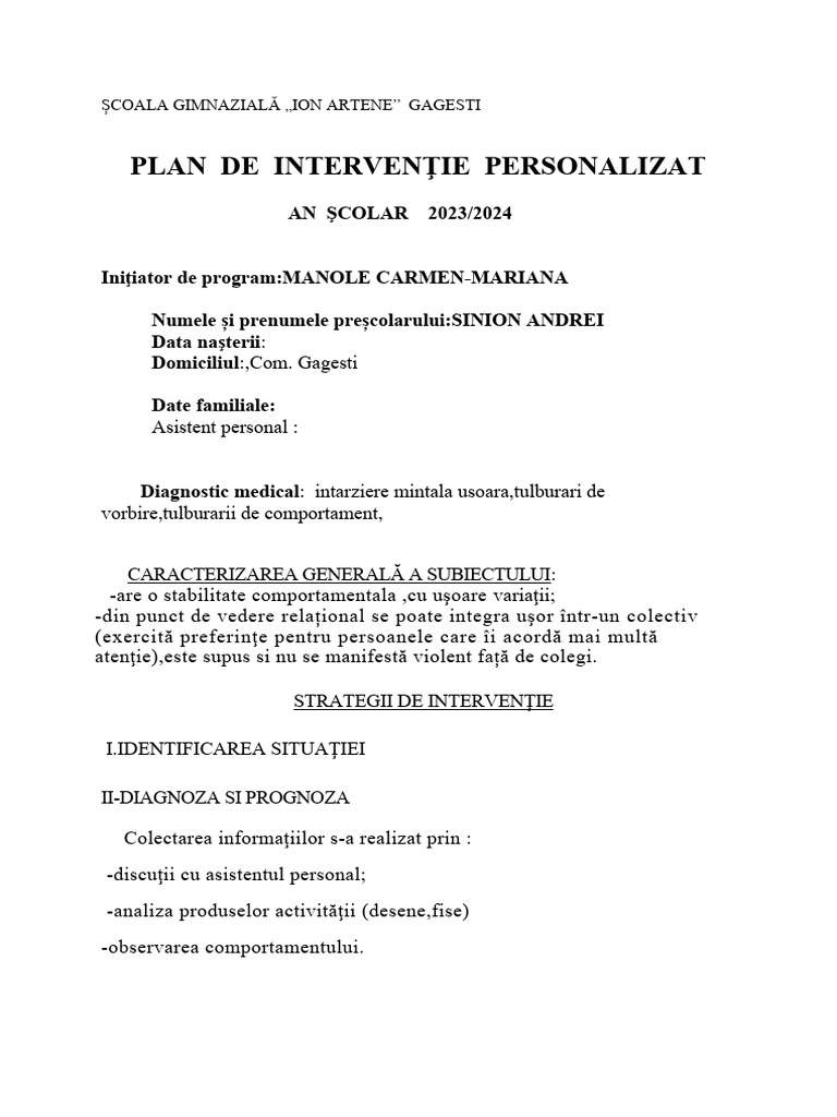 PLAN DE INTERVENŢIE PERSONALIZAT