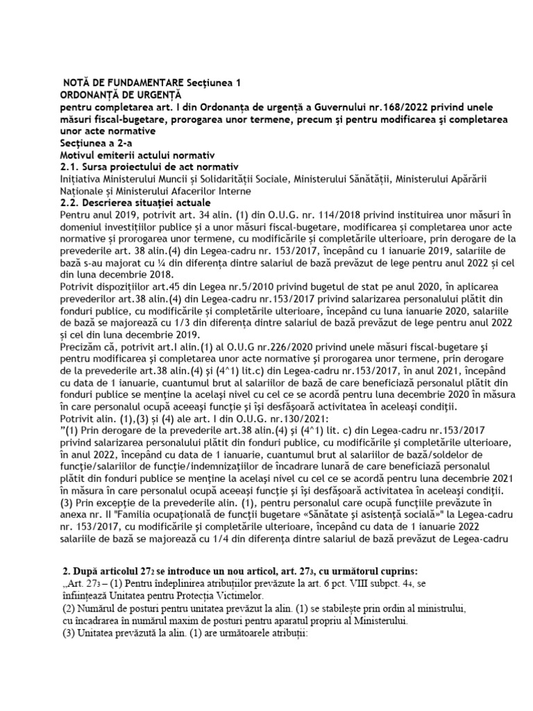 pentru completarea art. I din Ordonanța de urgență a Guvernului nr.168/2022 privind unele