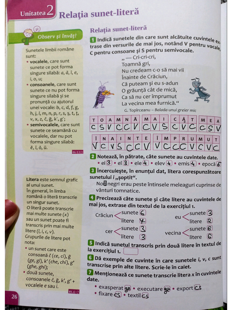 GPrecizeaz’ cate litere si cate sunete au cuvintele date. 40 de puncte