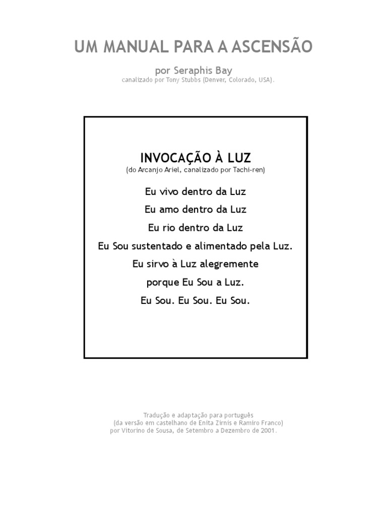 parte do leitor. Entretanto, a essência do trabalho canalizado permanece sem modificação.