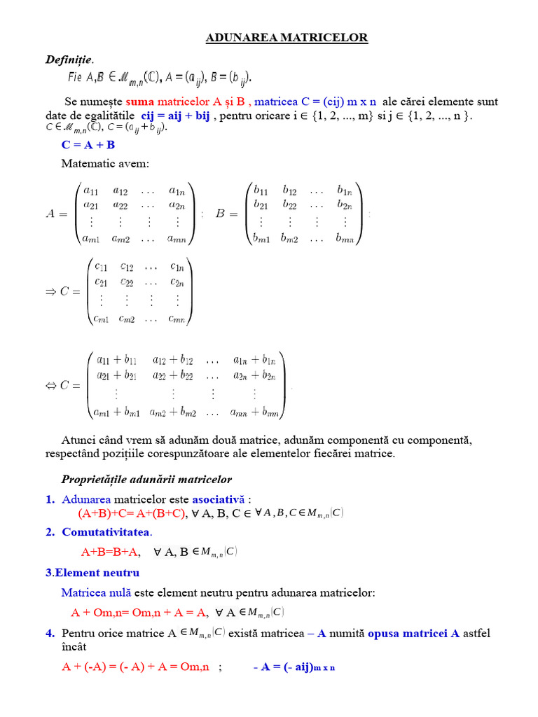 date de egalitătile cij = aij + bij , pentru oricare i ∈ {1, 2, ..., m} si j ∈ {1, 2, ..., n }.