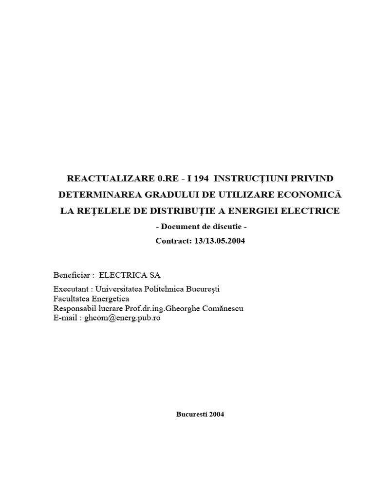 Reactualizare 0.re - I 194 Instrucţiuni Privind Determinarea Gradului de Utilizare Economică La Reţelele de Distribuţie A Energiei Electrice