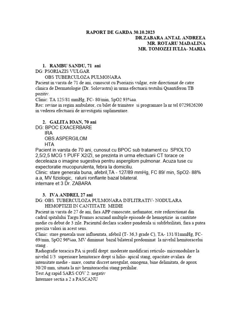 Pneumologie a III-a (24.10.2023), cu numeroase adresari la camera de garda, fara a