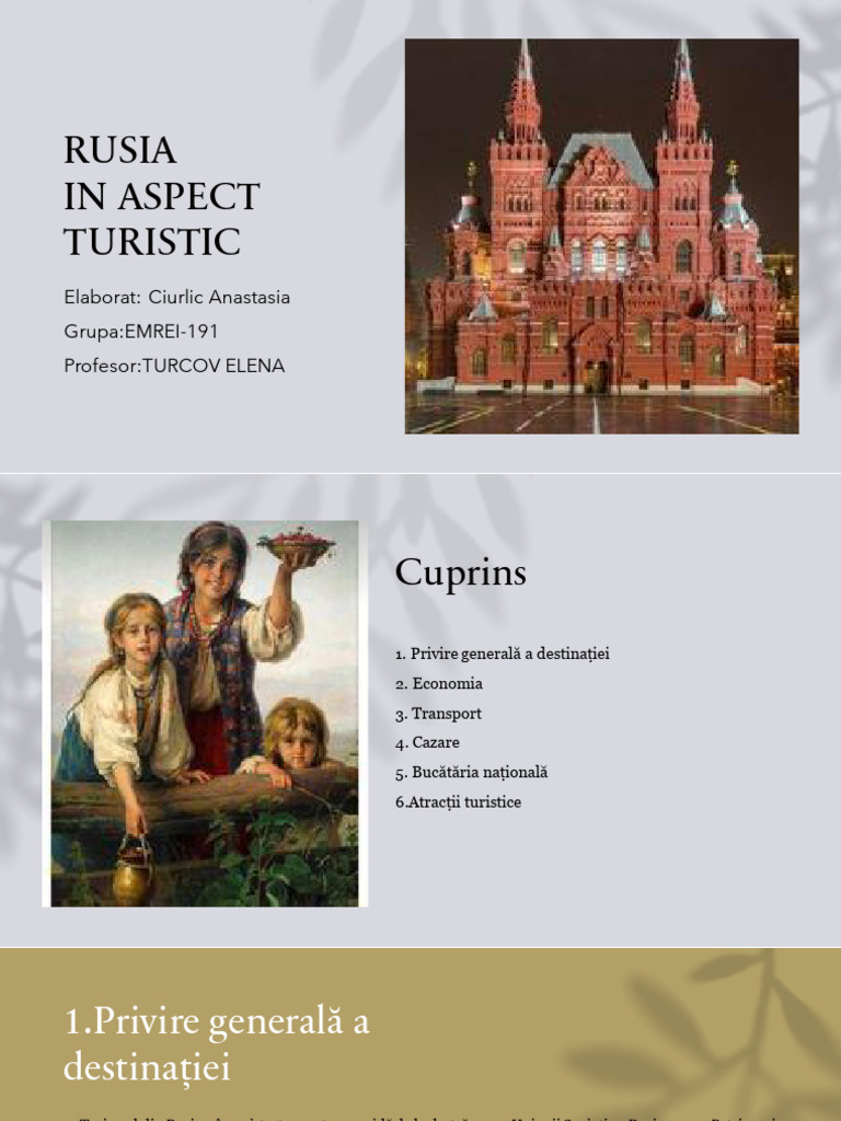 • Turismul din Rusia a înregistrat o creștere rapidă de la destrămarea Uniunii Sovietice. Rusia are un Patrimoniu